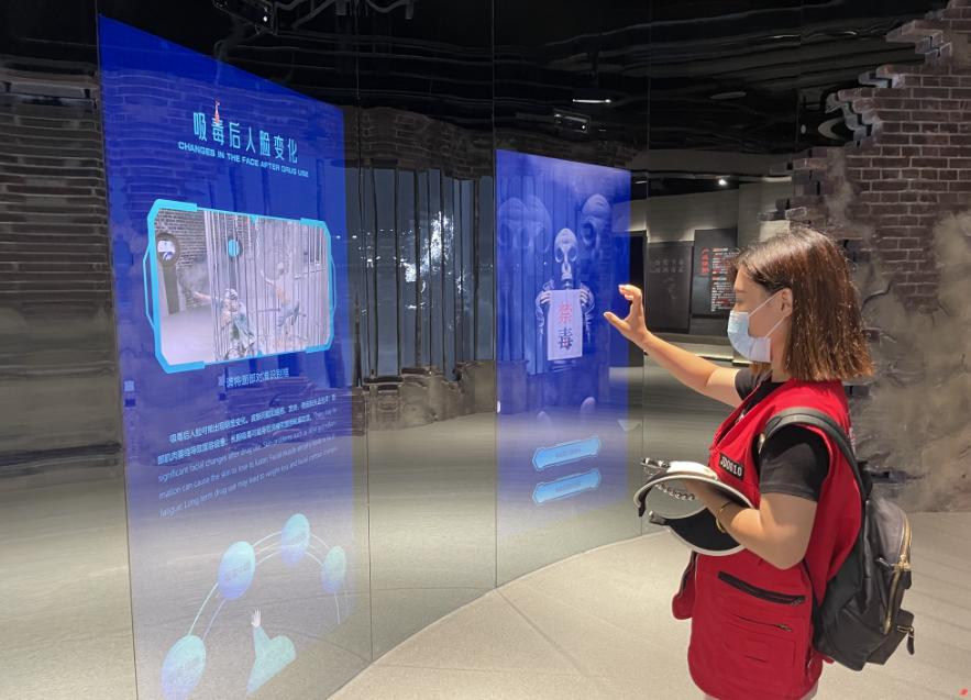 輕觸按鈕即可觀察毒品原株生長,開關木門即可挑戰5種吸毒誘惑,宣誓禁毒即可上傳簽名至漢陽樹上。6月26日是第36個國際禁毒日,當日武漢市漢陽區禁毒宣傳教育基地正式開館,60余名禁毒社工與部分群眾參觀后,直呼科技感爆棚互動性拉滿。